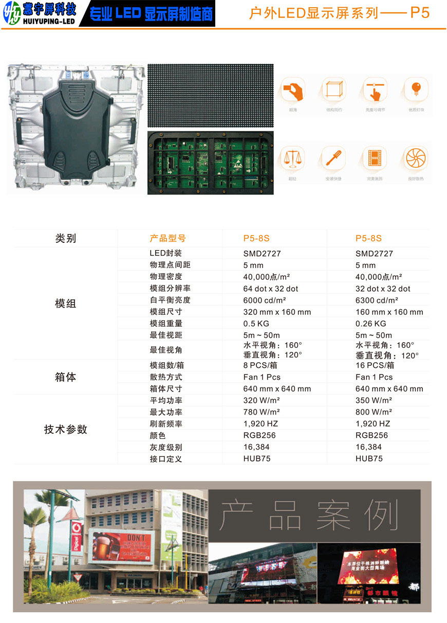 戶外P5全彩LED顯示屏產(chǎn)品特點: