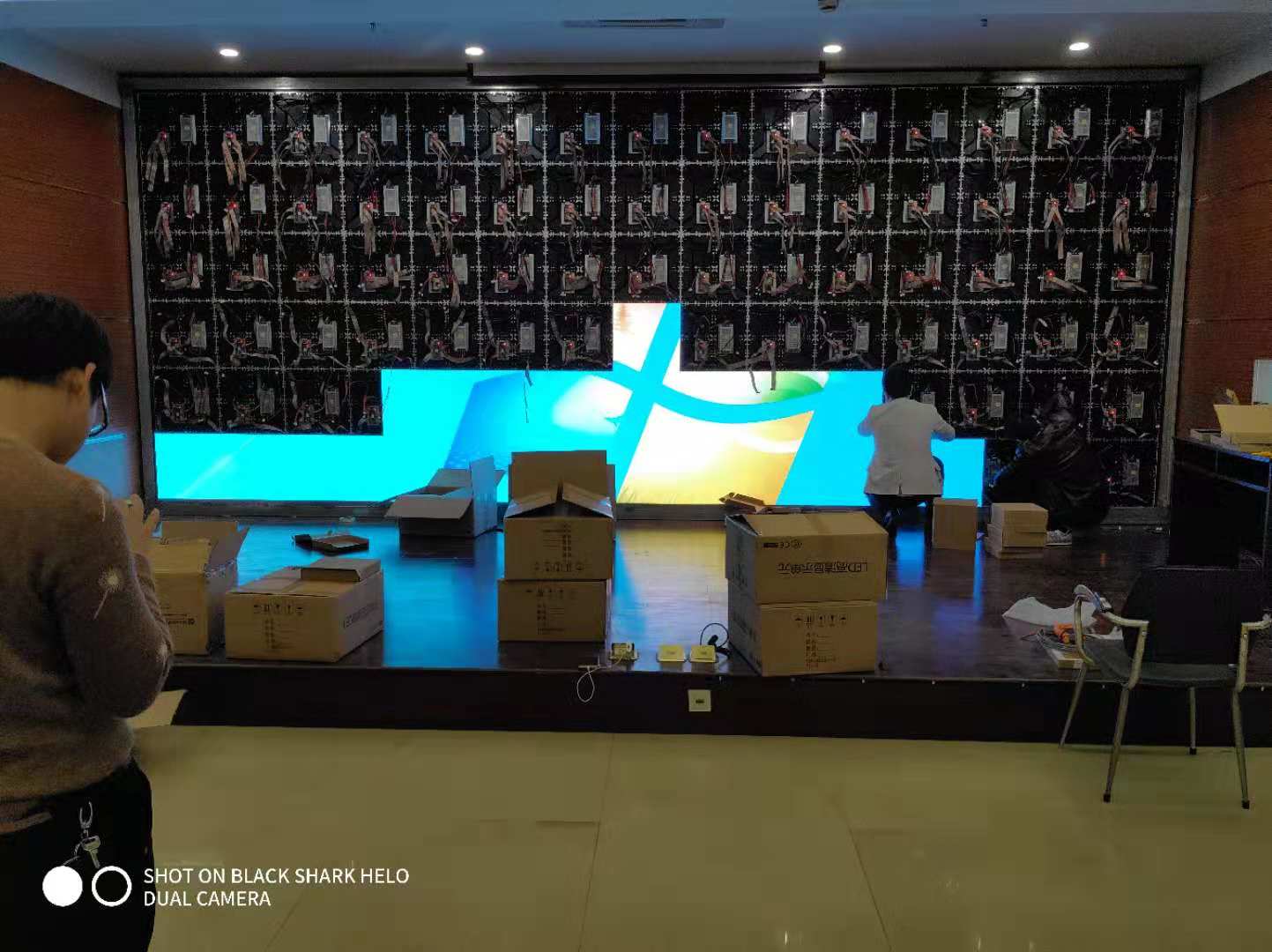 衢州建設衢州分行總部會議廳LED全彩屏采用p1.875小間距LED顯示屏 燈珠采用晶臺封裝驅(qū)動采用高刷芯片2053 刷新達到3840