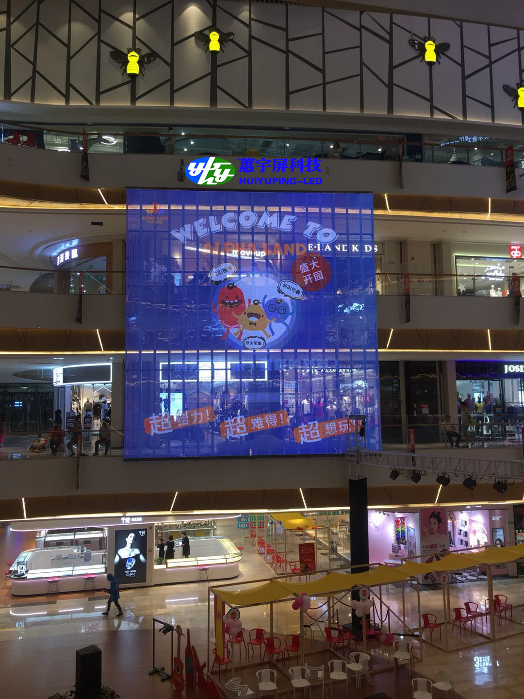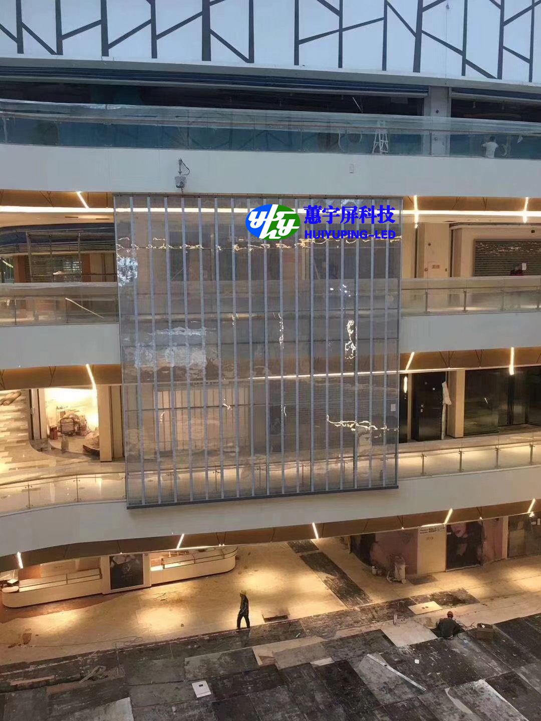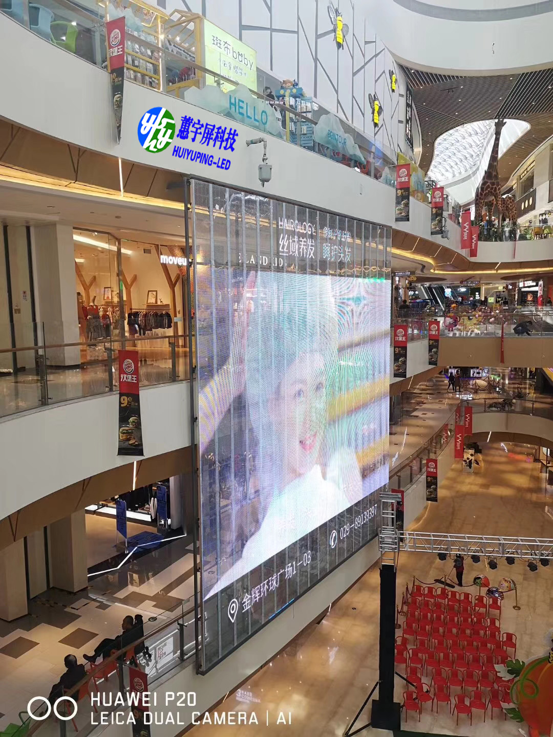 2)獨(dú)特的顯示效果,背景通透,播放的廣告畫面給人懸浮在玻璃幕墻上的感覺